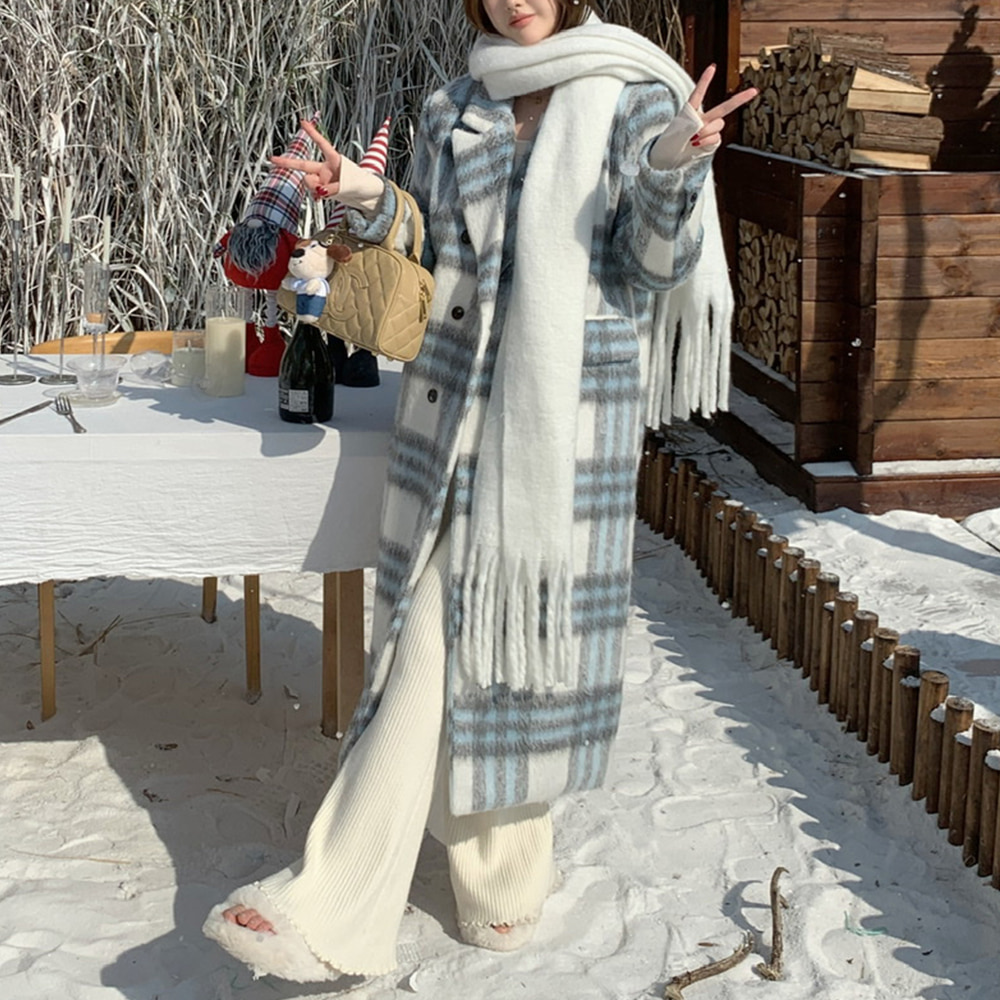 [DE238]블루 체크 모헤어 롱코트