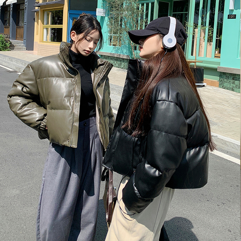 [DE074]에이크 루즈핏 레더 숏 패딩