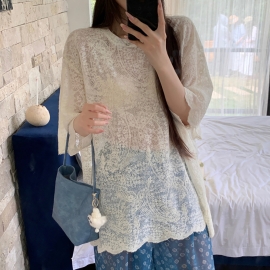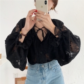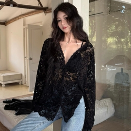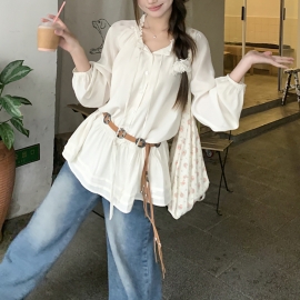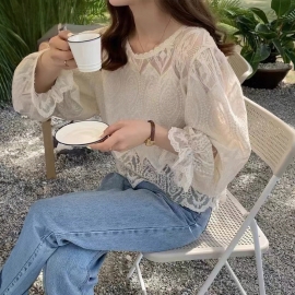 [EF085]아든 레이스 루즈핏 블라우스 티셔츠