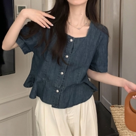 [CD280]엠마 스퀘어넥 데님 블라우스