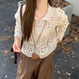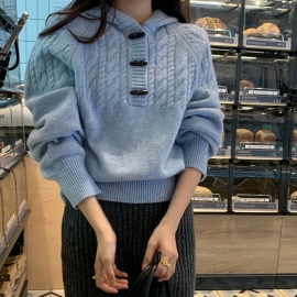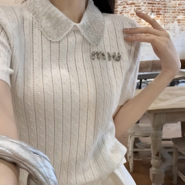 [CD395]베베 레이스 짜임 긴팔 카라 니트