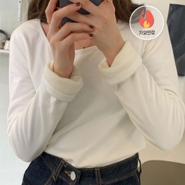 [DE882]럭키 두툼 유넥 기모 티셔츠