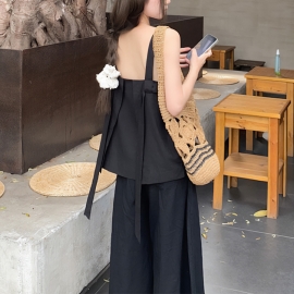 [EF126]스트랩 블라우스+팬츠 투피스세트