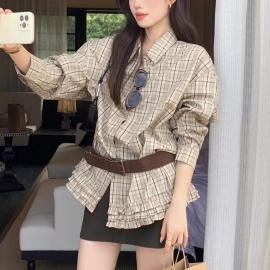 [EF177]러비 밑단 프릴 체크셔츠+벨트