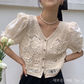 [AB908]시차오 레이스 펀칭 블라우스