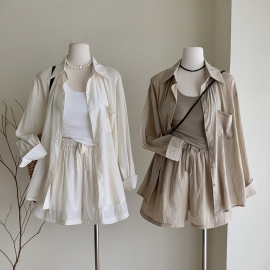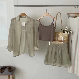 [CD356]시스루 긴팔 셔츠+끈나시+반바지 세트