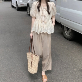 [CD425]제제 블라우스+9부 와이드팬츠 세트