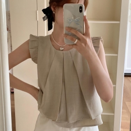 [CD556]싱글 뒤트임 핀턱 프릴 나시 블라우스