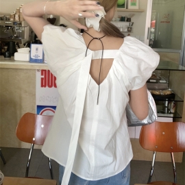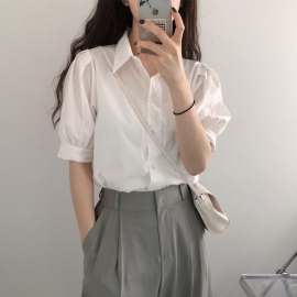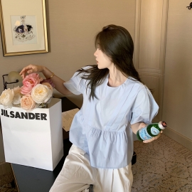 [NU461]비기닝 코튼 플레어 반팔 퍼프 블라우스
