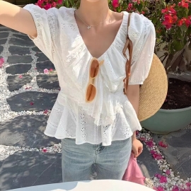 [CD593]프릴 캡소매 러블리 블라우스
