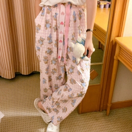 [CD354]러부 곰도리 체크 여름 파자마 팬츠
