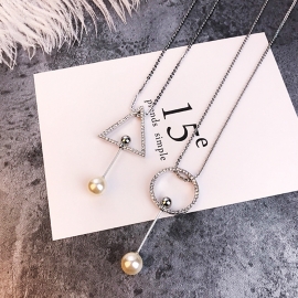 [N078]진주 팬던트 포인트 롱체인목걸이