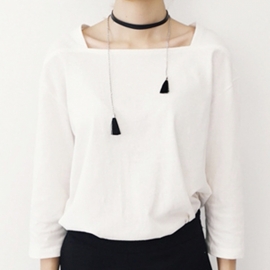 [N073]라운드 체인 포인트 쵸커 롱 목걸이